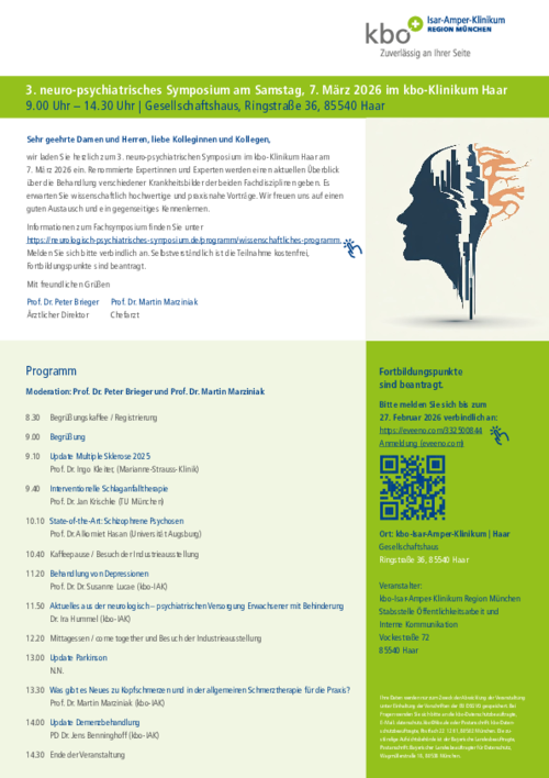 14.00 | Update Demenzbehandlung PD Dr. Jens Benninghoff (kbo-IAK) |